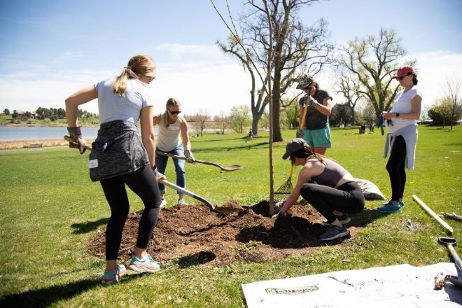The Park People—Denver’s oldest, most prominent city-wide park advocacy group—also joined DaVita and ADF for the Denver events. Kim Yuan-Harrell, executive director of The Park People, says the ecological benefits of planting trees are infinite.